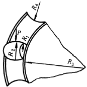 半径为R1及R2的滚柱及半径为R3及R4的环形槽(R4>R2) |