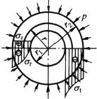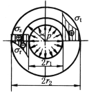 半径为r的圆柱面上点的主应力σr—径 向应力,σt—切向应力,σz—轴向应力 |