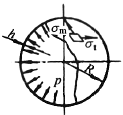 p——压力 q——单位荷载 σm和σt——径向和环向应力(拉伸时为正) h——壳体厚度 R——壳体横截面中面的半径 |