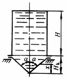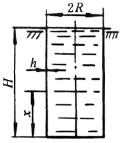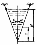 带有锥底的圆柱壳,装满液体