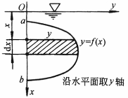 dF=p(x)dA=wxydx w——流体重度 p(x)=wx a≤x≤b dA=ydx |