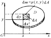 dm=μ(x,y)dA μ(x,y)——面密度 |