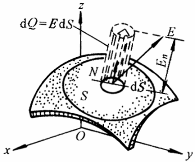dQ=E·dS E为变场强,dS为以N为法线的面积为dS的微分曲面片,可以表为 dS=dydzi+dzdxj+dxdyk |