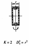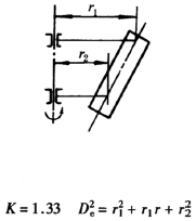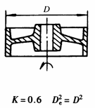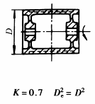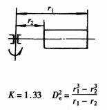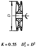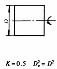 计算通式: 式中 m——旋转体质量,kg k——系数,见本表 De——旋转体的飞轮计算直径,m |