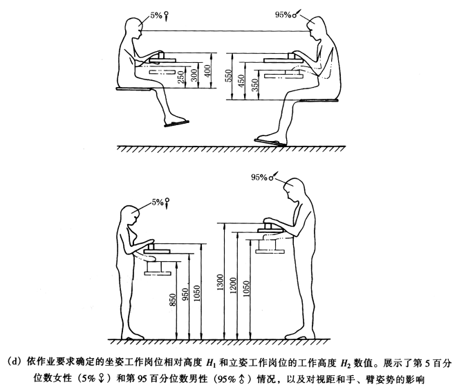 工作岗位尺寸设计的原则及其数值(GB/T 14776—1993) |