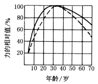 —男性,- - -女性 女性体力比男性低30%~40% |