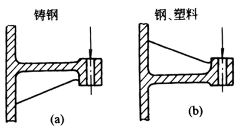 1.零部件结构形状和受力应与材料特性相适应;铸钢受压比受拉更好,钢和塑料则相反,受拉比受压好些(纵向弯曲),如图a和图b |