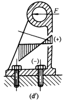 铸铁抗压强度远高于抗拉强度,铸铁支座应设计成图d' |