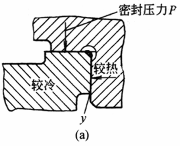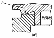5.考虑材料蠕变。在图a中,材料在圆柱面附近蠕变,受热较快的盖体被限制在中心,同时在y处发生蠕变,盖体无法拆卸。改为图a'后,尽管发生蠕变,也可以毫无损害地拆卸 |