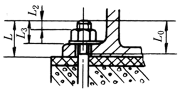 L2≈1.5P~5P L0——螺纹长度 P——螺距 L2——螺栓端部外露长度 |
