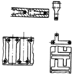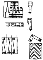 采用图a'方式,先打出一孔A,再用切口、弯曲的方法代替图a所示结构,可节省很大劳动量 |