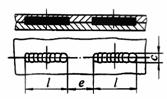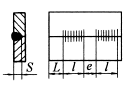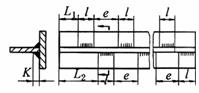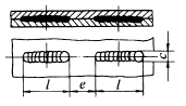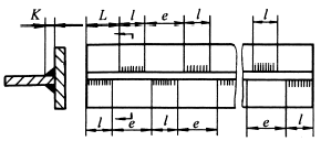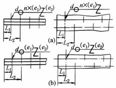 (a)两行对称点焊缝位于中心位置,e1是相邻两焊点中心的间距,e2是点焊缝的行间距,L是第1列焊缝起始焊点中心位置的定位尺寸 (b)按注2规定省略了焊缝段数 |