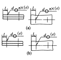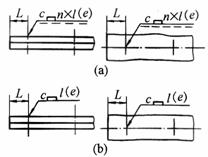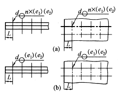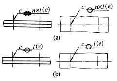 (a)断续I形焊缝在箭头侧,L是焊缝起始位置的定位尺寸 (b)按注2和注3的规定,省略了焊缝段数和非箭头侧的基准线(虚线) |