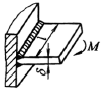 弯: 第一法: 弯矩M被一水平焊缝的力偶及垂直焊缝的力矩所平衡,即