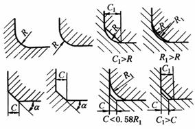 根据直径 D 确定 R (或R1)、C,另一相配零件的圆角或倒角按图中关系确定 |