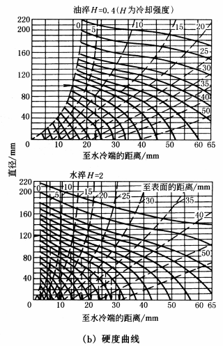 根据选定的材料及尺寸大小,求零件截面上的硬度分布 |