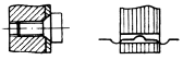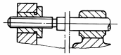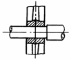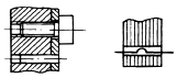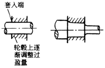 将轴向宽度较薄的盘状零件热装到轴上时,过盈量引起的反力有可能使盘状零件变形。为避免出现这种情况,要增加盘状零件的轴向宽度,不能增加时要从轴肩向套入端调整过盈量 |
