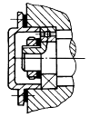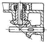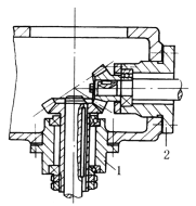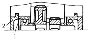 (4)采用调整零件。如图所示结构,在轴承外圈与轴承盖2之间加一环状零件1,它的厚度在装配时根据测量结果配制,组件的轴向尺寸加工时可按自由公差,积累的轴向误差可用零件1补偿,以保证对轴承内外圈的固定要求 |