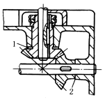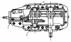 修配两调整垫1、2厚度,可保证两锥齿轮的正确啮合 |