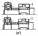 (7)图a结构在装配零件1时,其键槽与轴上的键要对准比较困难。改进后的设计(图a'),键与键槽则很易对准 |