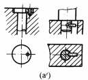 根据实际情况,有时采用对称对路构,可简化装配。图a'轴套内的槽,采用对称结构,比图a的槽和孔容易对准,简化了装配 |