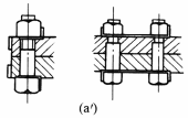 图a只是对螺母止动,而对螺栓并未止动,改进后(图a')同时对螺栓和螺母止动,保证了止动的确实可靠 |