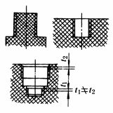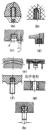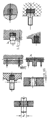 孔尽可能设置在不易削弱零件强度的位置。除相邻孔之间以及孔到边缘之间保留适当的距离外,尽可能使有孔部分壁厚厚一些,以防止孔眼处安装零件而破裂。由于锥形埋头螺钉头对于孔的边缘有侧向力,易使边缘发生崩裂,应避免采用 |