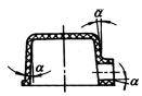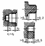 零件的壁与底部的厚度应均匀或尽量平缓过渡,厚薄悬殊或突变,将引起收缩不一致,产生气泡、凹陷或变形 对于热固性塑料壁厚过渡比,模压时为1∶3,挤压时为1∶5,热塑性塑料为1∶(1.5~2) |