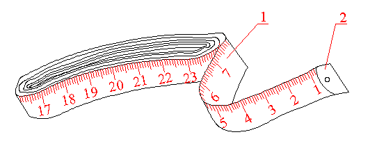 折卷式卷尺 1—尺带 2—夹头