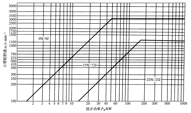 图3 有效宽度制窄V带选型图 |