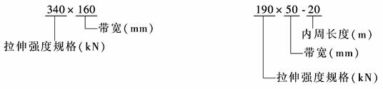 注:1.宽度小于400mm的带不作横向全厚度拉伸强度试验。 2.标记示例: 端平带 环形平带