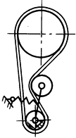只能单向传动。可增大小轮包角,自动调节带的初拉力。可用于中心距小,传动比大的情况下 |