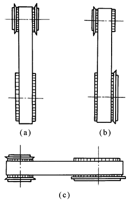 大小轮两侧均设挡圈,或至少主动轮两侧与从动轮下侧设挡圈,如图c |