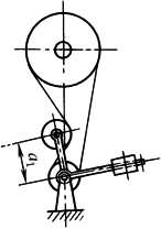 用于V带、同步带的固定中心距传动 张紧轮安装在带的松边内周上,其轮缘应与带轮相同,节圆直径dp≥(0.8~1)d1 d1—— 小带轮节圆直径 |