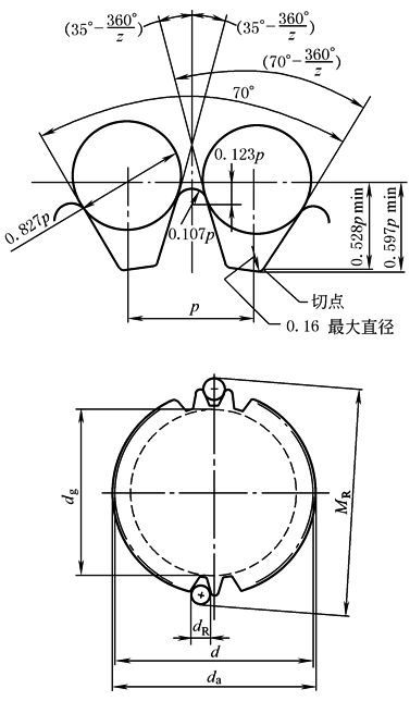 节距p=4.76mm链轮的齿形尺寸以及直径尺寸、测量尺寸 |
