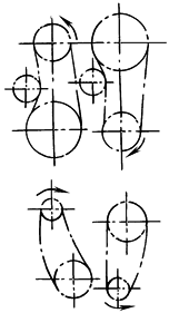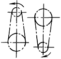 两轮轴线在同一水平面上,链条的松边不应在上面,否则由于链条垂度逐渐增大,引起松边和紧边相碰 |