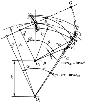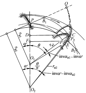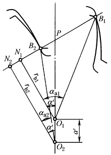 当实际啮合线的端点B2落在理论啮合线的极限点N1的左侧时,便发生渐开线干涉 |