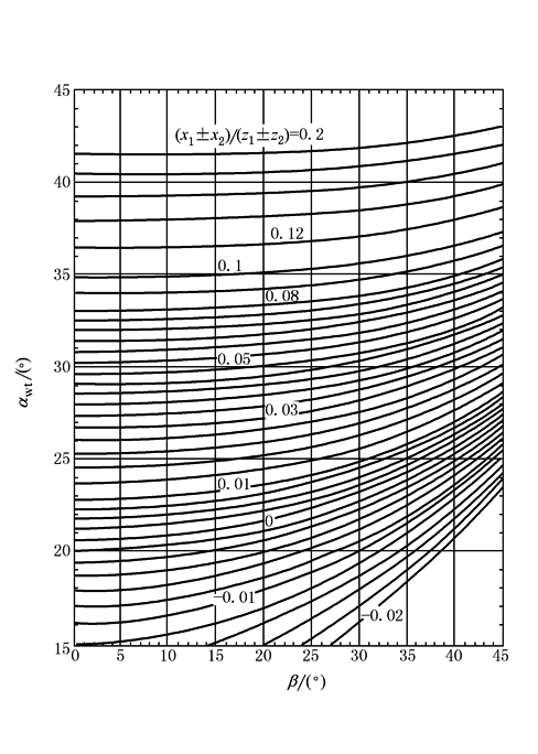 图1 端面重合度εα 注:1.本图适用于α(或αn)=20°的各种平行轴齿轮传动。对于外啮合的标准齿轮和高变位齿轮传动,使用图2则更为方便。 2.使用方法:按α't和 3.α't可由图3查得。