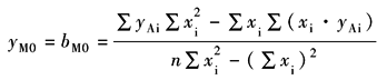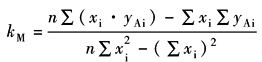 当实测的齿面设计齿廓(螺旋线)为不修形的齿廓(螺旋线),yDi=0,则平均齿廓(螺旋线)迹线yMi可以直接在实际齿廓(螺旋线)迹线yAi中求出 用最小二乘法可得yMi=kM·xi+bM0的斜直线 斜直线截距