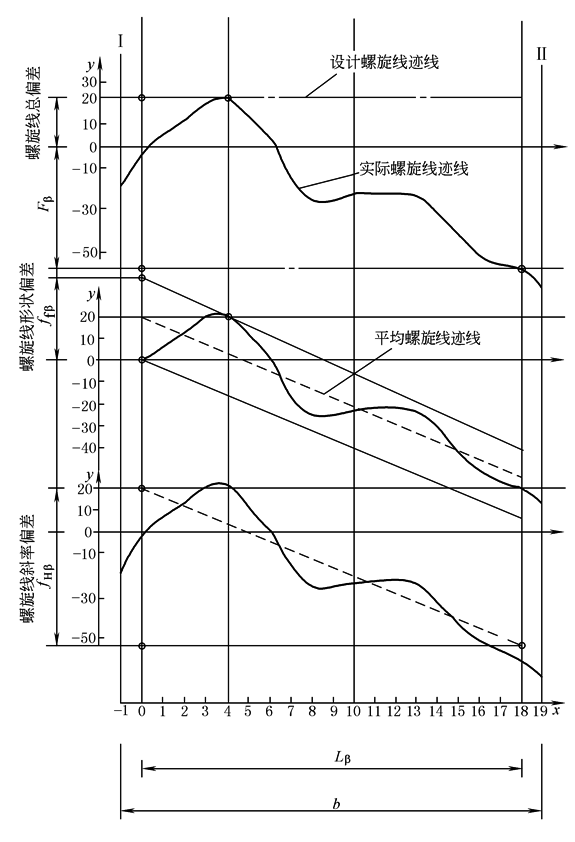 图2 螺旋线偏差(iii)图形 ① 螺旋线总偏差Fβ:按定义,因为减薄区的偏差偏向体外正偏差,必须计入偏差值