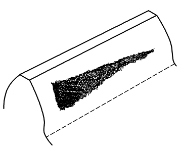 这一节,将对获得与分析接触斑点的方法进行解释,还给出对齿轮精度估计的指导 检验产品齿轮副在其箱体内所产生的接触斑点,可以帮助我们对轮齿间载荷分布进行评估 产品齿轮和测量齿轮的接触斑点,可用于装配后的齿轮的螺旋线和齿廓精度的评估 检测条件 ① 精度 产品齿轮和测量齿轮副轻载下接触斑点,可以安装在机架上的齿轮相啮合得到。为此,重要的是,齿轮轴线的不平行度,在等于产品齿轮齿宽的长度上的数值,尽可能在接近的位置上测定,不得超过0.005mm。同时也要保证测量齿轮的齿宽不小于产品齿轮的齿宽,通常这意味着对于斜齿轮需要一个专用的测量齿轮,对于大齿轮来说,这样的测量齿轮可以是一个特制的产品齿轮的样品,并保留它,便于替换损坏了的齿轮的备件的生产 相配的产品齿轮副的接触斑点也可以在相啮合的机架上获得 ② 载荷分布 产品齿轮副在其箱体内的轻载接触斑点,有助于评估载荷的可能分布,在其检验过程中,齿轮的轴颈应当位于它们的工作位置,这可以通过对轴承轴颈加垫片调整来达到 ③ 印痕涂料 适用的印痕涂料有:装配工的蓝色印痕涂料和其他专用涂料。应选择那些能确保油膜层厚度在0.006~0.012mm的应用方法 ④ 印痕涂料层厚度的标定 这对判明接触斑点的检查结果是很重要的,操作者掌握了稳定的工艺后,就可来确立印痕涂料层的厚度。在垂直于切平面的方向上以一个已知小角度移动齿轮的轴线,即在轴承座上加垫片并观察接触斑点的变化,这标定工作应该有规范地进行,以确保印痕涂料、测试载荷和操作工人的技术都不改变 ⑤ 测试载荷 用于获得轻载齿轮接触斑点所施加的载荷,应恰好够保证被测齿面保持稳定地接触 ⑥ 记录测试结果 接触斑点通常以画草图、照片、录像记录下来,或用透明胶带覆盖接触斑点上,再把粘住接触斑点的涂料的胶带撕下来,贴在优质的白卡片上 操作者的培训 要完成以上操作的人员,应训练正确地操作,并定期检查他们的效果,以确保操作效能的一致性 接触斑点的判断 接触斑点可以给出齿长方向配合不准确的程度,包括齿长方向的不准确配合和波纹度,也给出齿廓不准确性的程度,必须强调的是,做出的任何结论都带有主观的,只能是近似的并且依赖于有关人员的经验 (1)与测量齿轮相啮的接触斑点 图1~图4所示的是产品齿轮与测量齿轮对滚产生的典型的接触斑点示意图 |