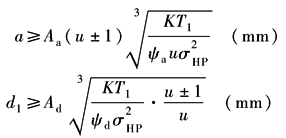 在初步设计齿轮时,根据齿面接触强度,可按下列公式之一估算齿轮传动的尺寸