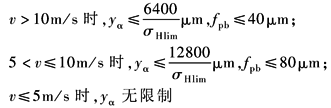 υ>10m/s时,yα≤11μm,fpb≤40μm; 5<υ≤10m/s时,yα≤22μm,fpb≤80μm; υ≤5m/s时,yα无限制 |
