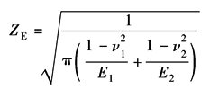 弹性系数ZE是用以考虑材料弹性模量E和泊松比ν对赫兹应力的影响,其数值可按实际材料弹性模量E和泊松比ν由下式计算得出。某些常用材料组合的ZE可参考下表查取