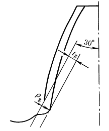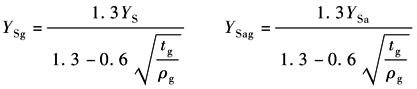 上述二式仅适用 当磨削台阶高于齿根30°切线切点时,其磨削台阶的影响将比上二式计算所得的值小 YSg和YSag也考虑了齿根厚度的减薄 |