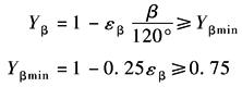 螺旋角系数Yβ是考虑螺旋角造成的接触线倾斜对齿根应力产生影响的系数。其数值可由下式计算