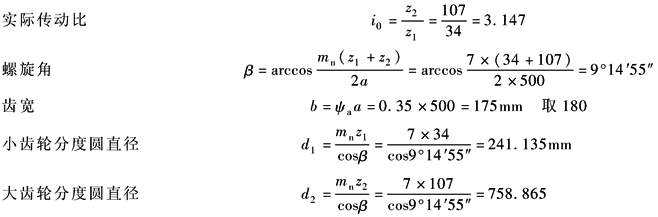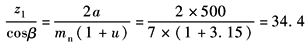 取 mn=7mm 由公式 取 z1=34 z2=iz1=3.15×34=107.1 取 z2=107