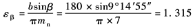 图5 αn=20°时的节点区域系数ZH 7)弹性系数ZE 由表弹性系数ZE 8) 重合度系数Zε 纵向重合度