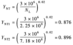 8) 试验齿轮的应力修正系数YST 见表轮齿弯曲强度核算的公式,YST=2.0 9) 寿命系数 由表弯曲强度的寿命系数YNT中表