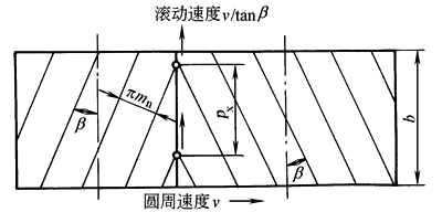 比较式(1)和式(2)得出β1=β2=β 由于圆弧齿轮的啮合线平行于轴线,在啮合传动的每一瞬间,在同一轴截面(包括端面)上只能有一个啮合点,所以其端面重合度为零,圆弧齿轮必须制成斜齿轮才能啮合传动。为了保持连续啮合,必须在前一对齿脱开之前,后一对齿已进入啮合,即 纵向重合度